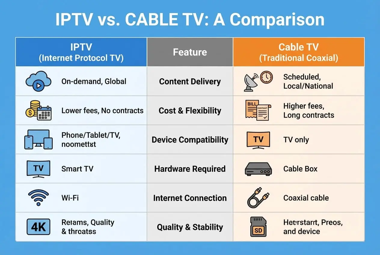 | Feature | Internet Protocol Television (IPTV) | Cable TV (Traditional) |